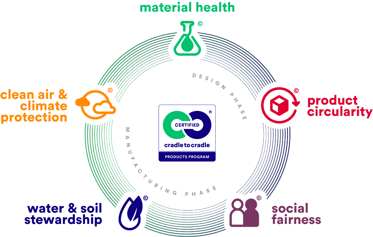 Cradle to Cradle Certified® is an environmental label for products that are considered safe, and responsibly made. For more than a decade, Cradle to Cradle Certified has been helping companies to innovate and optimize materials and products according to their standards.