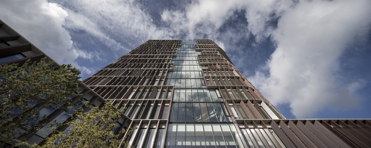 Kính trong hệ thống mặt dựng mô-đun là kính hộp phủ cách nhiệt Guardian ClimaGuard® Premium2 tối ưu hóa sự thoải mái và trạng thái khỏe khoắn của mọi người trong tòa nhà. Loại kính này, với một số được uốn cong, mang đến sự cân bằng hoàn hảo giữa độ truyền sáng cao, độ trong suốt cao (không có hình ảnh phản chiếu khó chịu) và khả năng cách nhiệt xuất sắc.