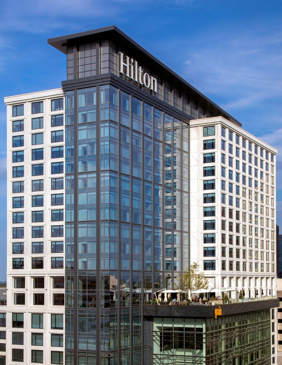 Das Hilton Norfolk The Main ist das aufregendste Hotel in der Innenstadt von Norfolk mit seinem modernen Design, seinen Restaurants, Meetings und Unterhaltungsangeboten – ein wunderschönes Ambiente, das von SunGuard® SuperNeutral® 68 und AG 43 auf Klarglas umhüllt ist.