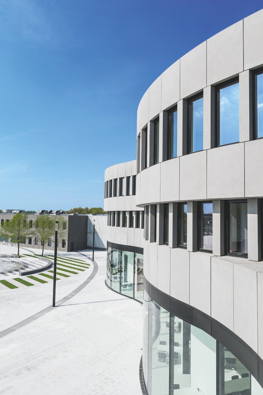 Guardian SunGuard SuperNeutral™ 70/41 wurde für die gebogene Glasfassade ausgewählt. Mit einem niedrigen Energiedurchlassgrad von 41 % und einer Lichtdurchlässigkeit von 70 % bietet SN 70/41 die ideale Balance zwischen Sonnensteuerung, Lichtdurchlässigkeit und Wärmedämmung, was den Komfort der Mitarbeiter und Besucher erhöht.