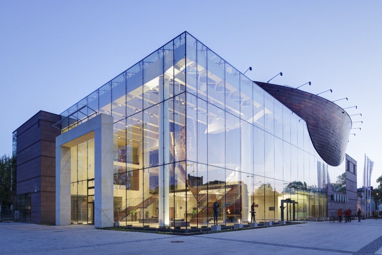 Die Philharmonische Halle von Wejherowo ist ein modernes, auffälliges Gebäude – ihre Boot-ähnliche Form, die die Ostsee und die starken Traditionen der kaschubischen Stickereien in der Region bezeichnet.