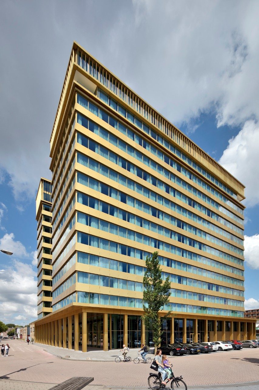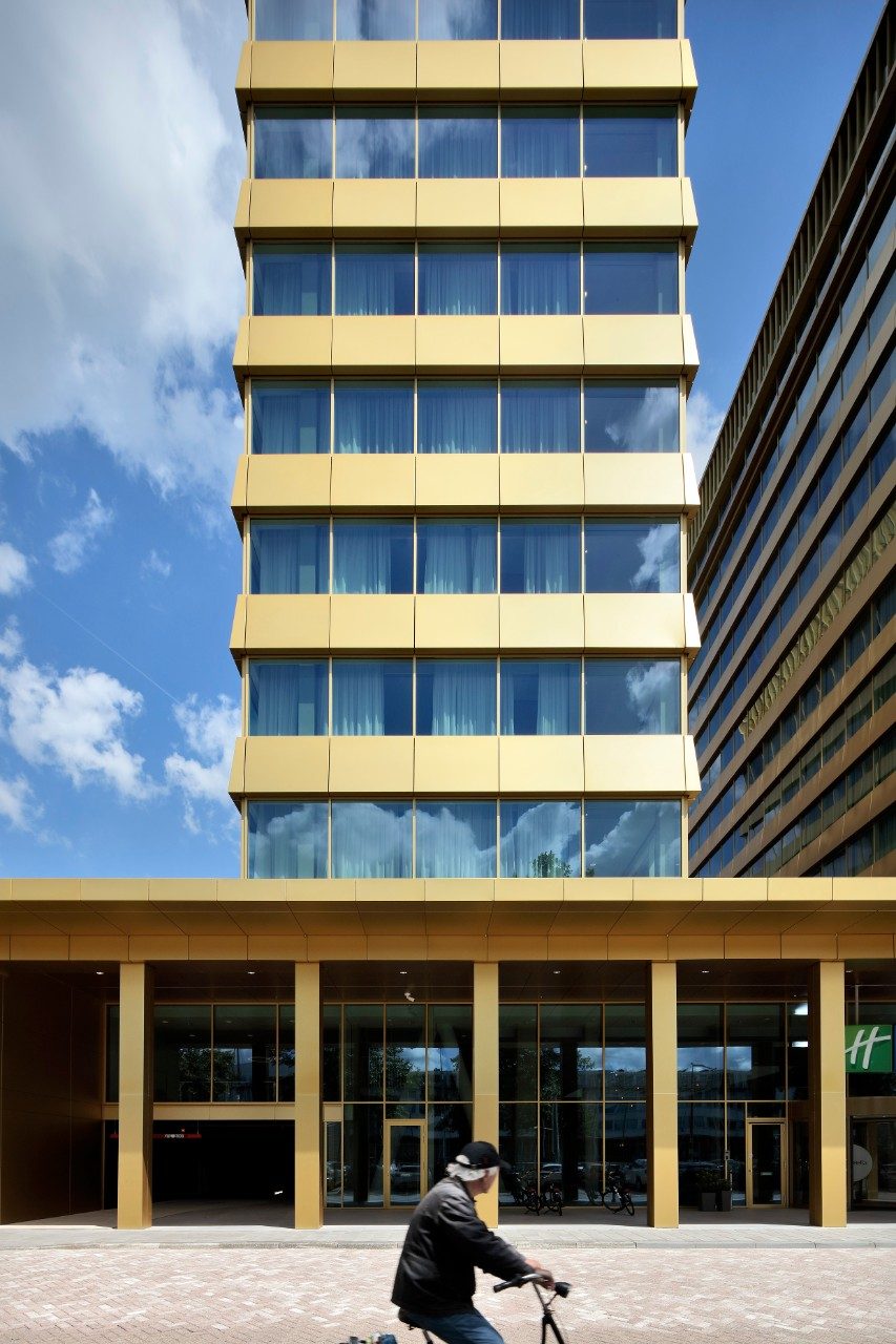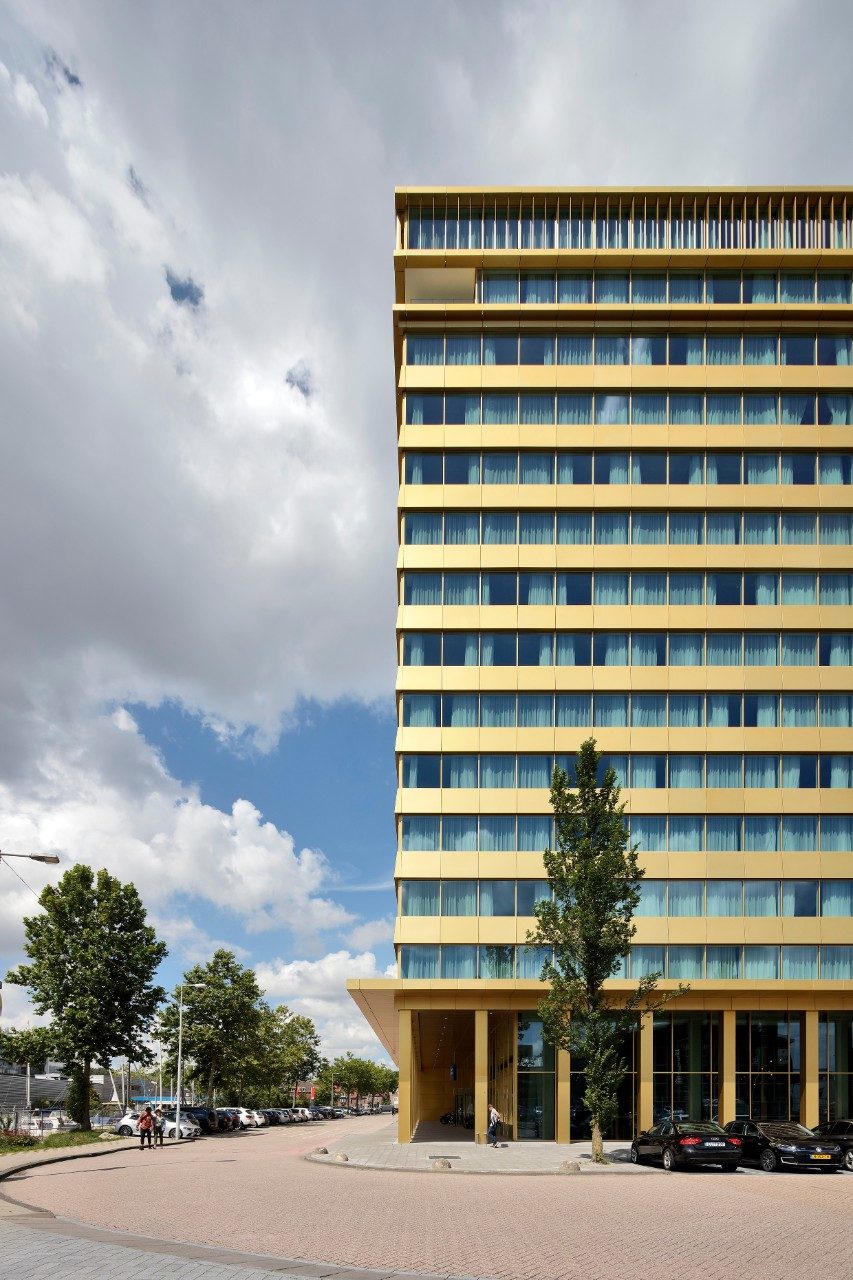 Designed by DeDato Ontwerpers en Architecten, the stability of the building was a challenge. The two towers of the hotel have curtain walls all around so that only internal walls could be used for stability. Reinforcements in the pile foundation and basement were required to give the slender north tower sufficient stiffness.