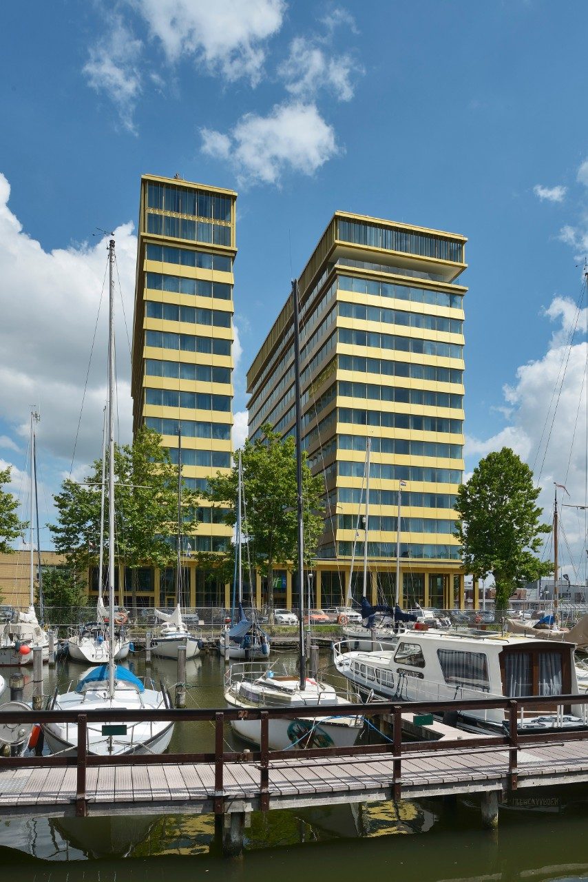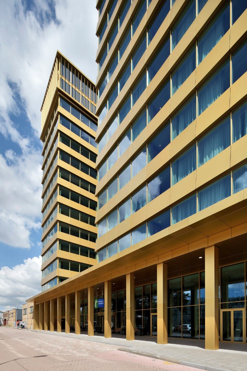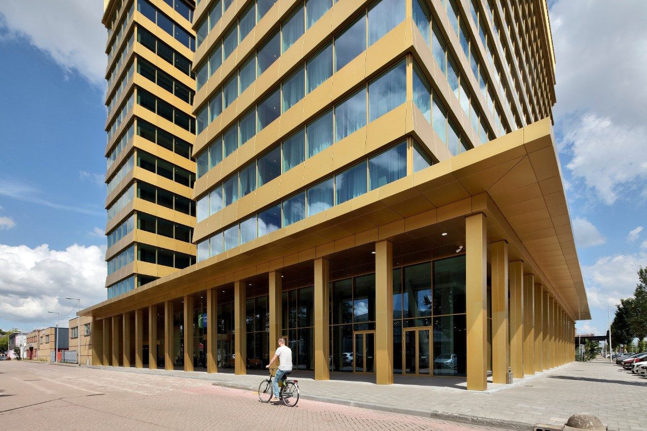 Designed by DeDato Ontwerpers en Architecten, the stability of the building was a challenge. The two towers of the hotel have curtain walls all around so that only internal walls could be used for stability. Reinforcements in the pile foundation and basement were required to give the slender north tower sufficient stiffness.