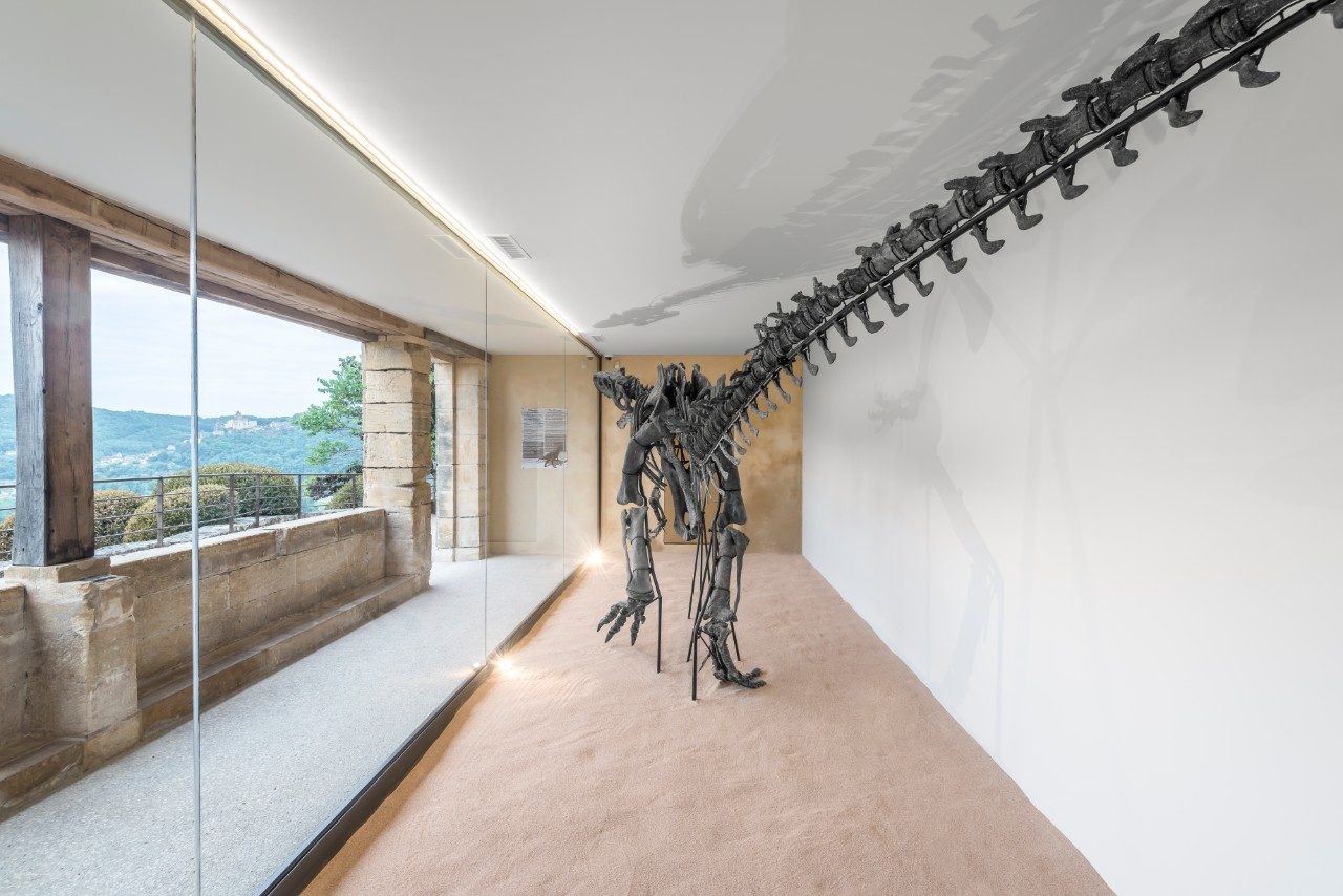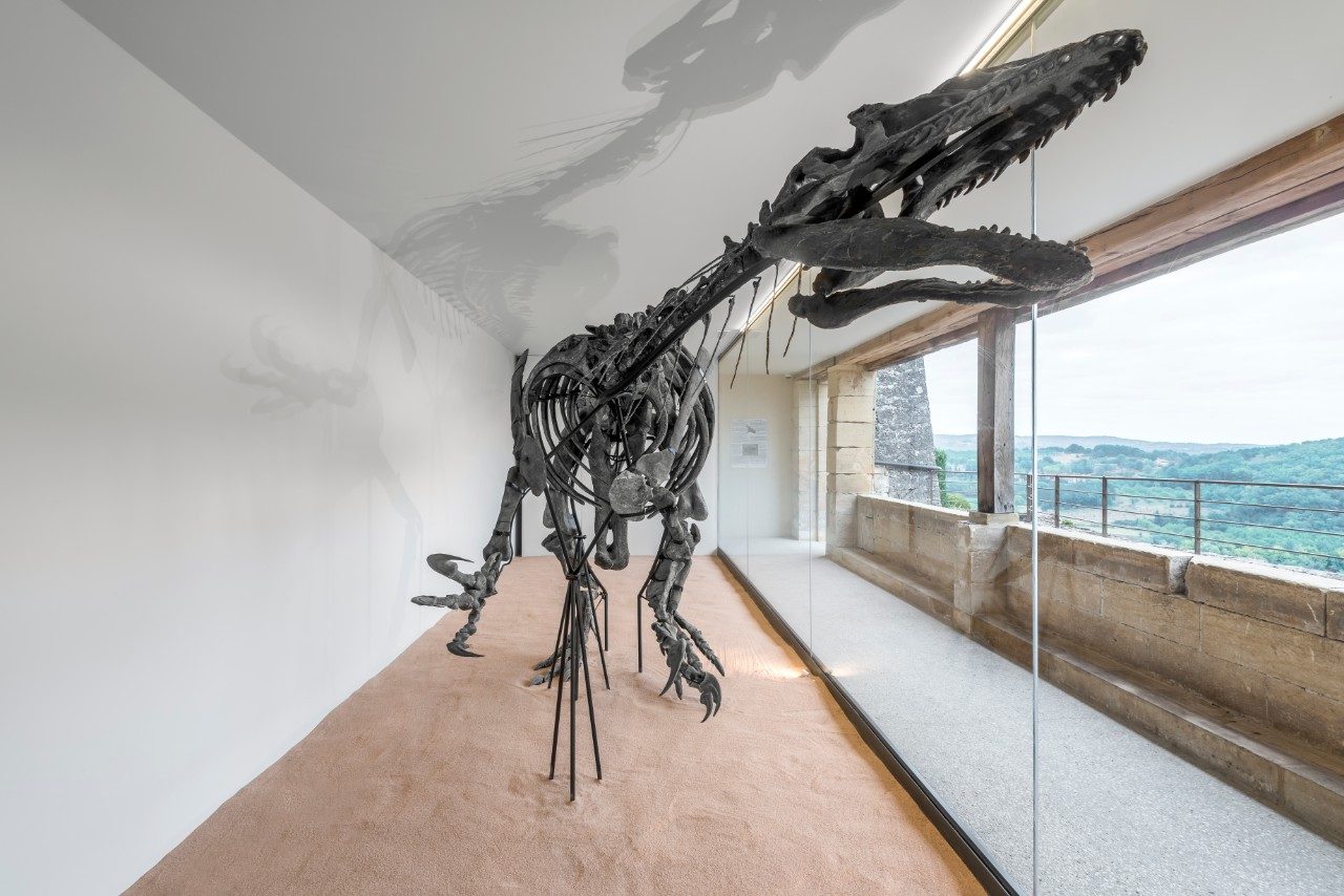 A giant, 158 million year-old dinosaur named Kan now sits in the gardens facing the Dordogne Valley. This formidable predator is an allosaurus, a cousin of the Tyrannosaurus or T-Rex. Discovered in Arizona, USA in 2010, this skeleton is one of the most complete in the world. Kan is 7.5 metres long and 2.2 metres tall and consists of 75% real bone; the remainder is made from moulded parts to allow assembly.