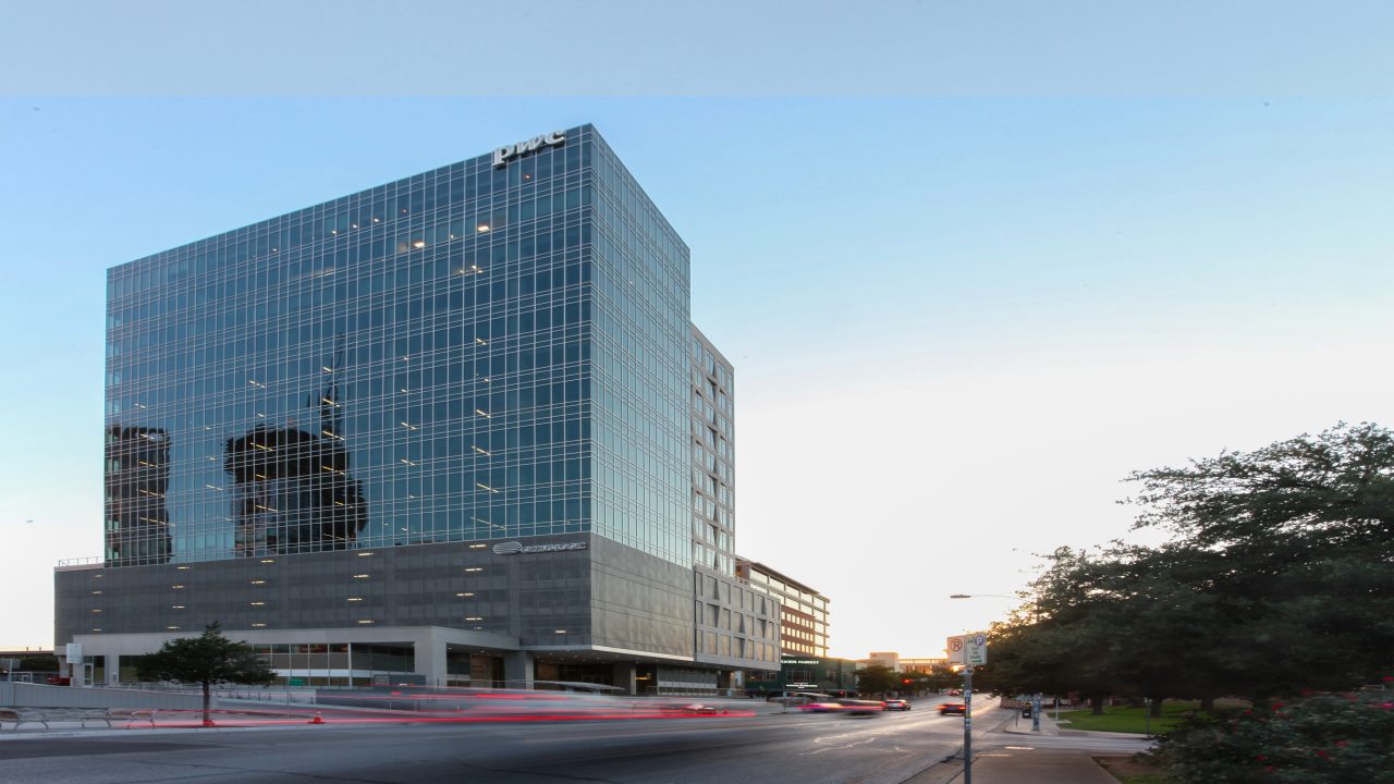 Shoal Creek Walk: un magnifico edificio per uffici di 15 piani nel quartiere commerciale di Austin, con una valutazione di 2 stelle nel programma Austin Energy Green Building. Quasi 65.000 metri quadrati di spazio per uffici con quasi 30.500 metri quadrati di substrato vetroso SunGuard® SNX 62/27 su CrystalGray®, progettato per essere bello dentro e fuori.