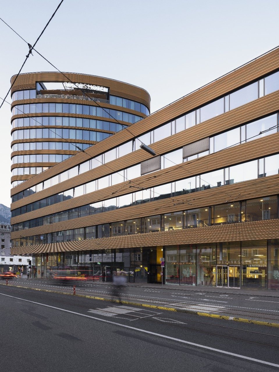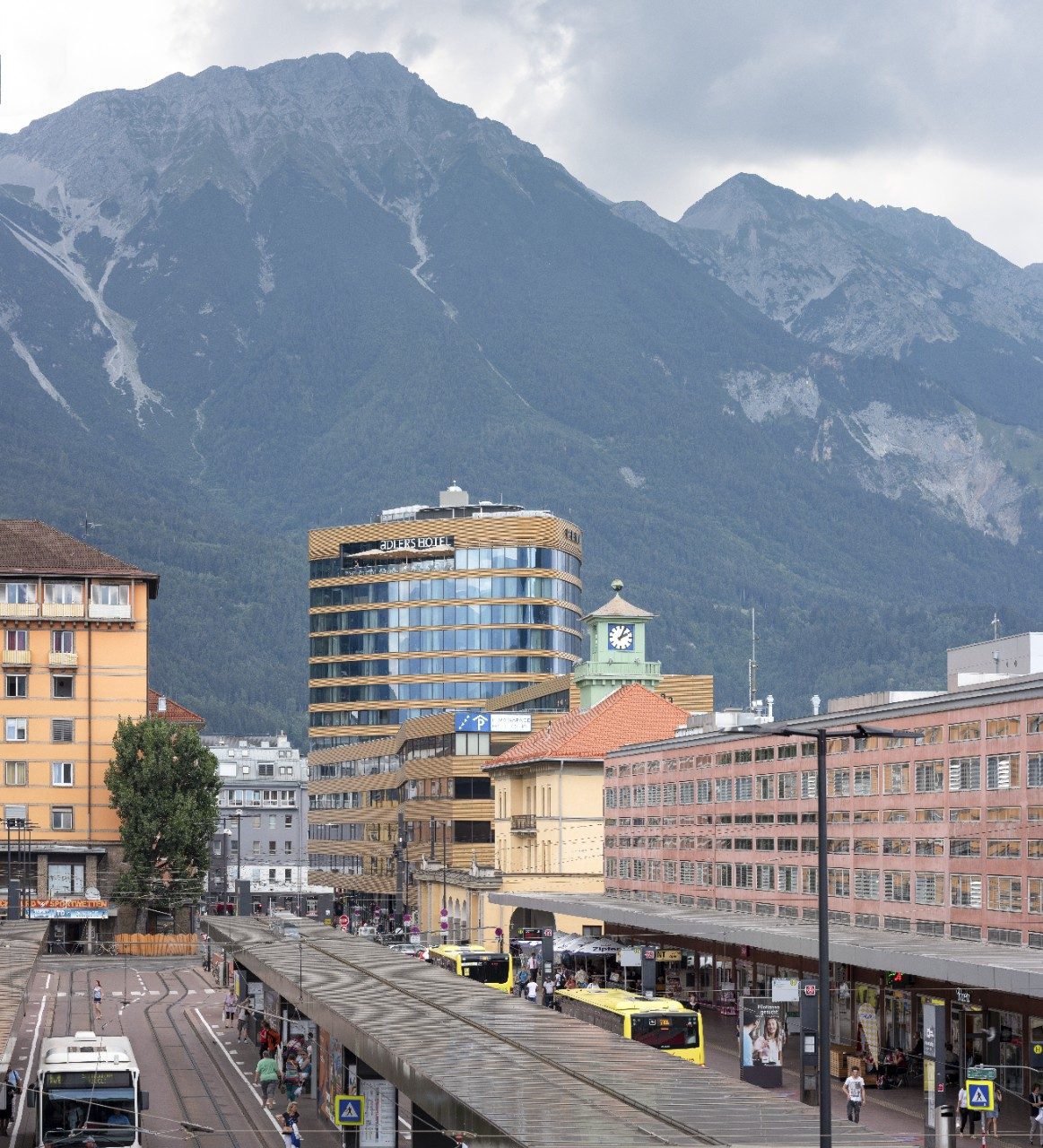 Budynek Headline, zaprojektowany przez wiedeńskich architektów, Henkego i Schreiecka, był pierwszym wieżowcem wybudowanym w centrum Innsbrucka od czasu Igrzysk Olimpijskich w 1976 roku. Nowoczesny, estetyczny budynek handlowo-biurowy usytuowano obok głównego dworca kolejowego, zmieniając tym samym wygląd dzielnicy. Budynek wyznacza wschodnie wejście do centrum miasta, idealnie łącząc się z miejskim krajobrazem.