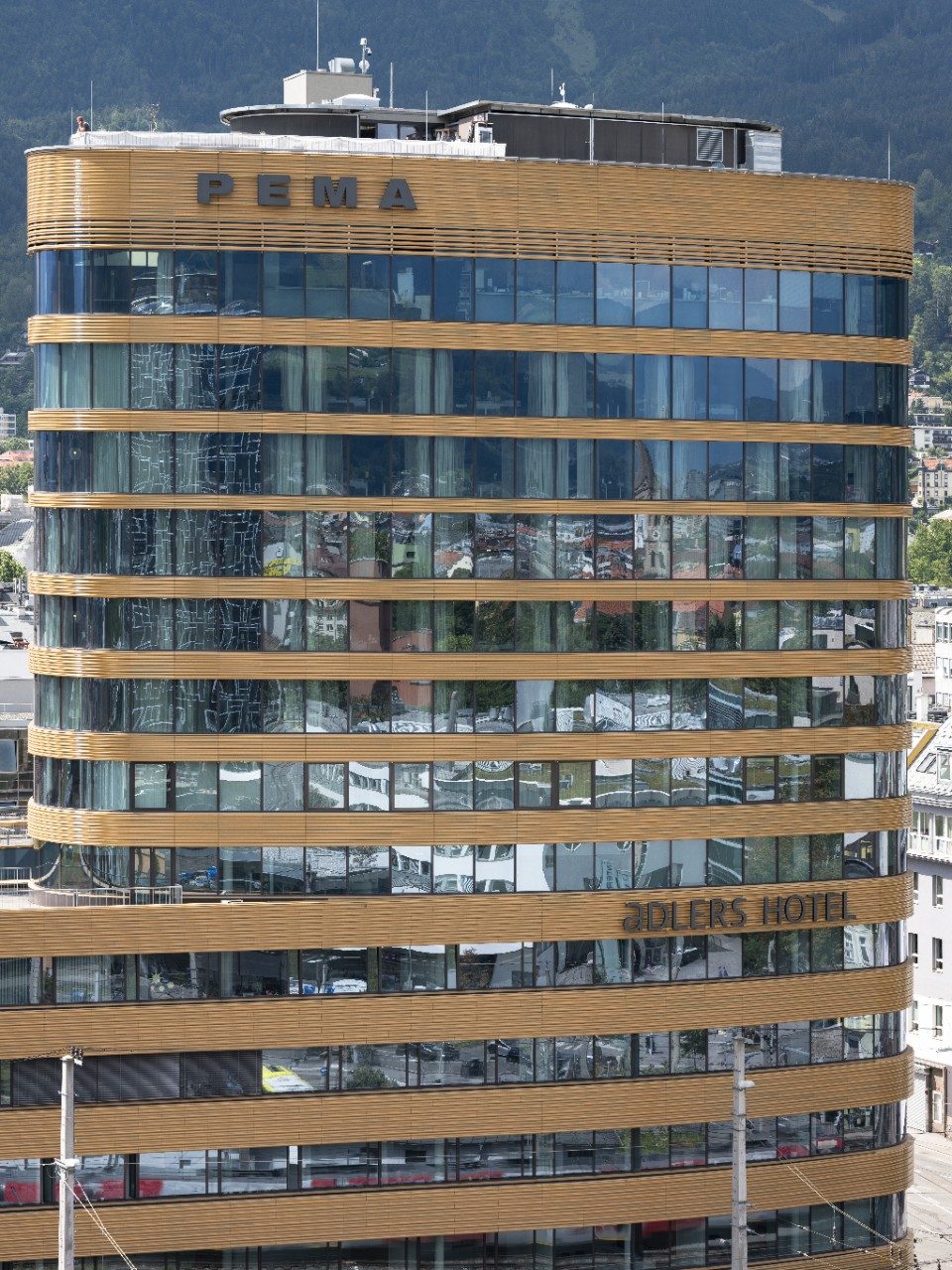 Pięciopiętrowy, lekko zakrzywiony budynek i przyciągająca wzrok 12-piętrowa wieża hotelowa o wysokości 50 metrów stanowią zachwycający, lśniący akcent w tej okolicy. W Headline mieści się Sąd Rejonowy Innsbrucka, główne biura firmy medialnej Moser Holding oraz wyżej wymieniony Adlers Hotel. Na najwyższym piętrze znajduje się ogólnodostępny taras na dachu, oferujący zapierające dech w piersiach widoki na miasto i góry Tyrolu.