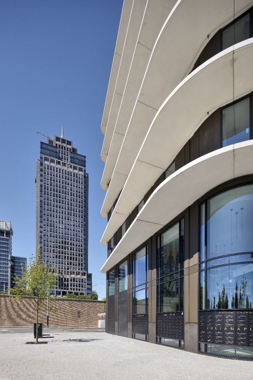 Inspirându-se de la acoperișul rotunjit al Stației Amstel, silueta emblematică a turnului pune în valoare orizontul orașului Amsterdam. Acoperișul turnului oferă spațiu în aer liber, umbră de soare și protecție împotriva zgomotului pentru apartamente. Ritmul elementelor verticale din fațada vitrată este sincronizat cu atenție cu ritmul fațadei stației feroviare principale.