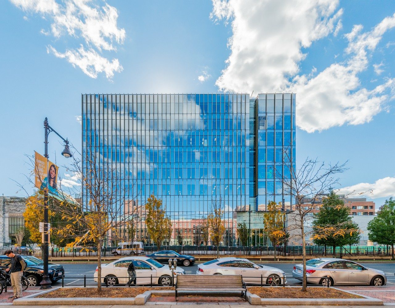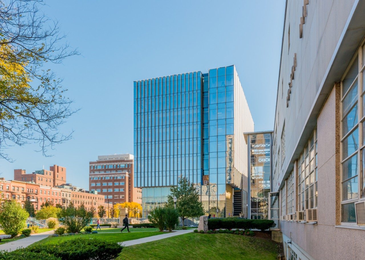 A 170,000-square-foot, nine-story, state-of-the-art research facility encourages collaboration of life scientists, engineers, and physicians. The building is covered in SunGuard® AG 50 on clear with SunGuard IS 20 on the #4 surface of the insulating glass units and includes neuroscience research, systems/synthetic biology research, a satellite vivarium, and a cognitive neuroimaging center.