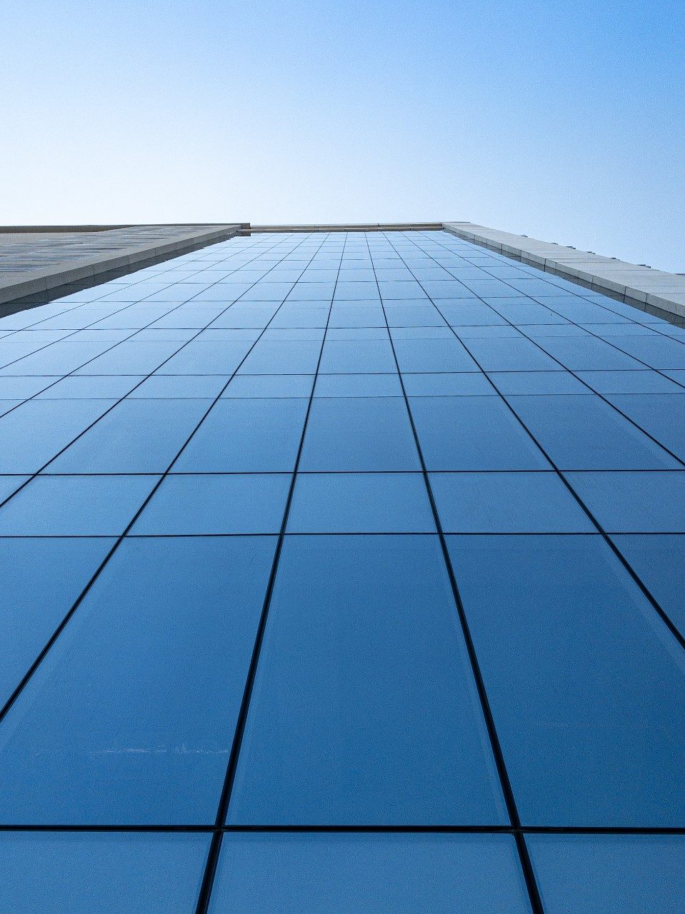 Clad in SunGuard® Royal Blue 40 high-performance coating on clear glass, the building presents a light blue, transparent aesthetic that is slightly reflective. In concert with other efficient building features, this low-E glass helps prevent the overheating of the interior.
