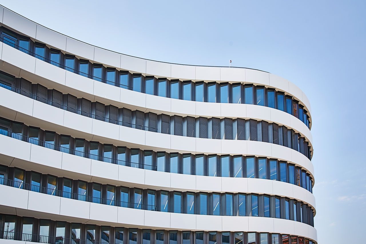 The 75,000 square metres façade features a curtain wall that is double glazed to allow for a high solar protection on neutral-looking glass.