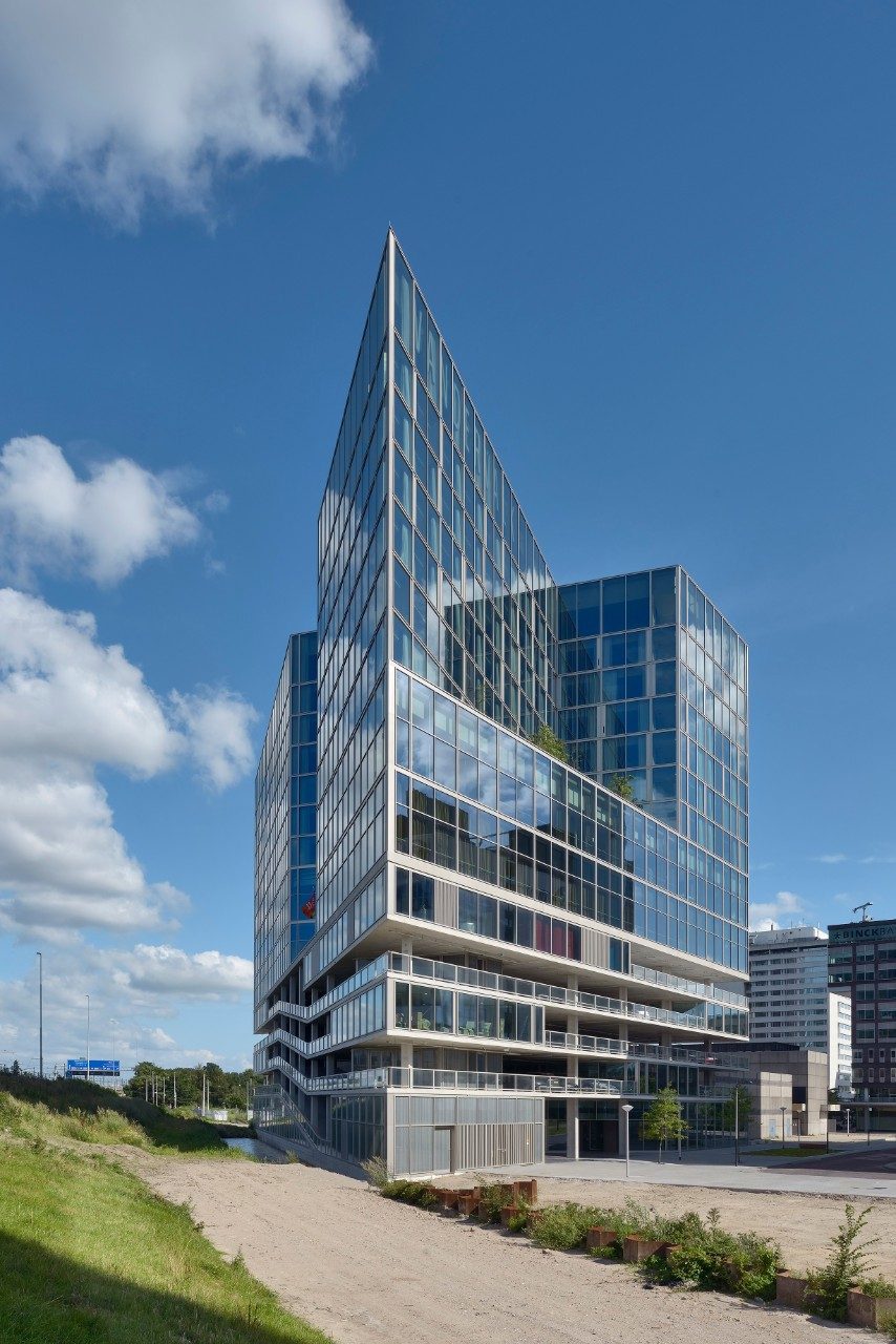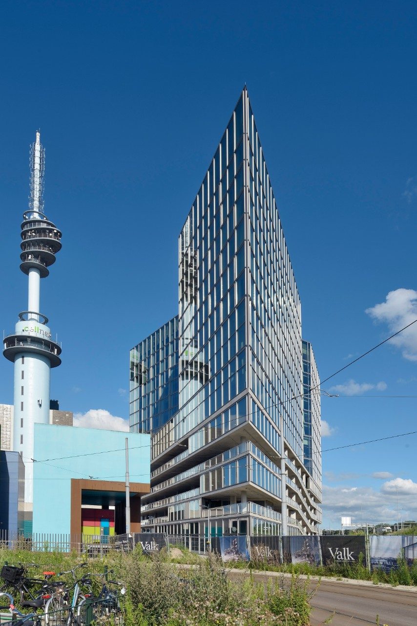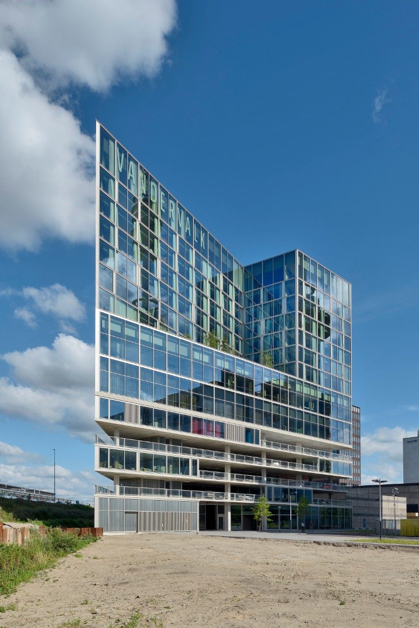 The Van der Valk hotel in Amsterdam’s Zuidas district was designed by Wiel Arets Architects, who gave the building a unique, clean, sharp look. The architecture is characterised by a homogeneity to all the façades. The large windows create an open, transparent building that blends in with its surroundings. The hotel also achieved a BREEAM-NL Excellent rating.