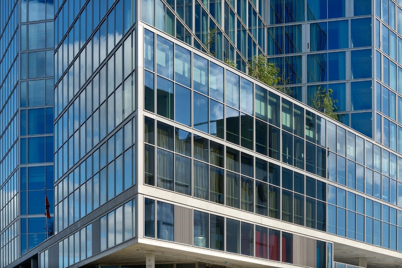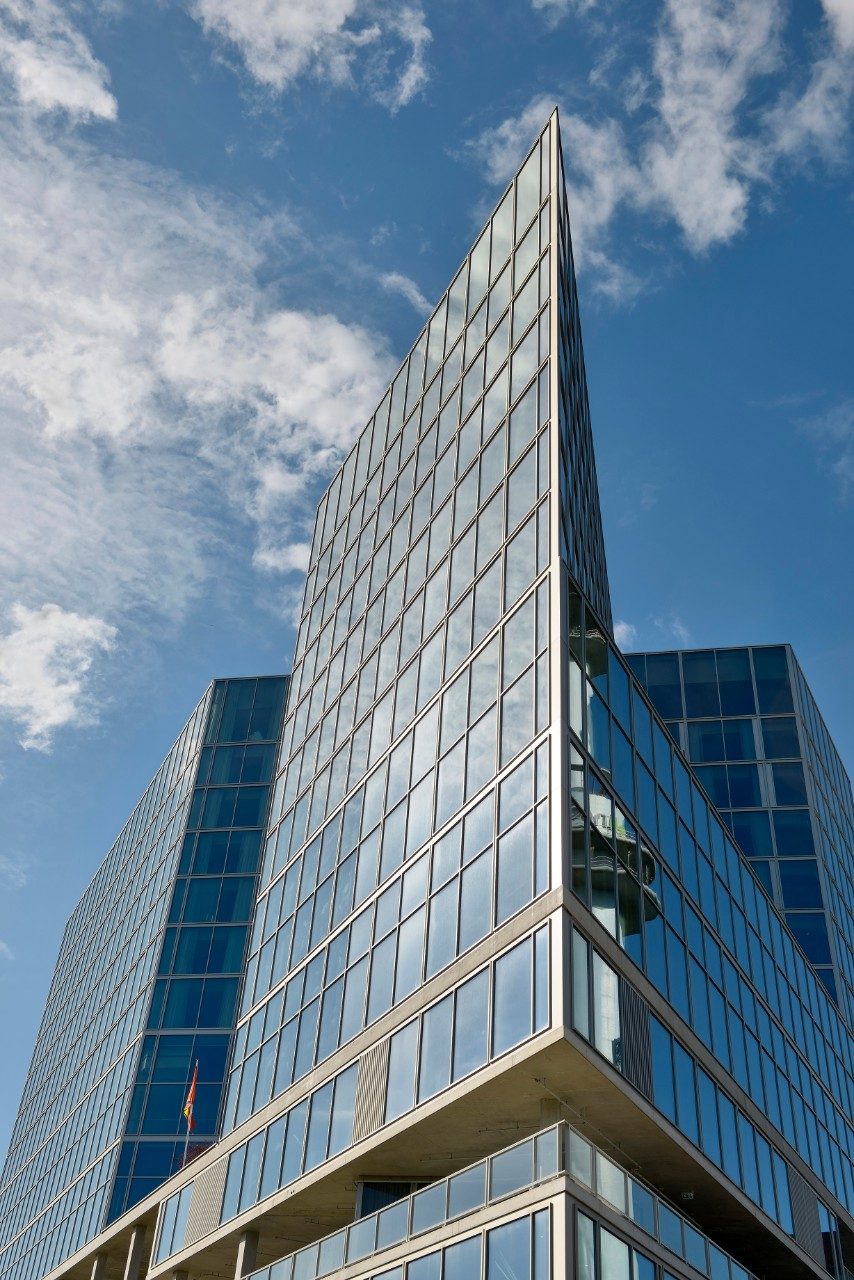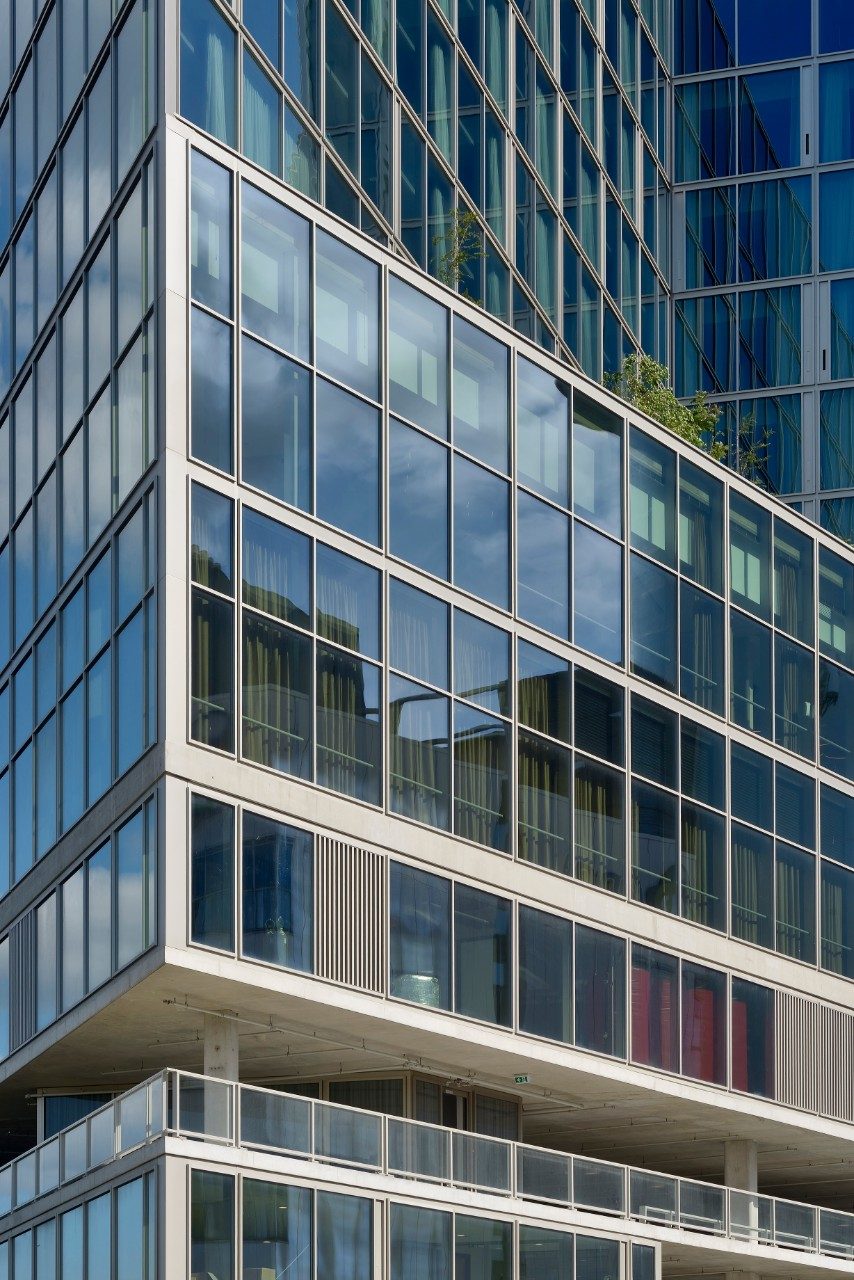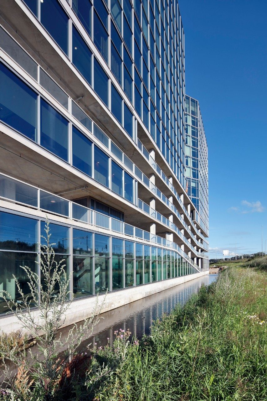 The Van der Valk hotel in Amsterdam’s Zuidas district was designed by Wiel Arets Architects, who gave the building a unique, clean, sharp look. The architecture is characterised by a homogeneity to all the façades. The large windows create an open, transparent building that blends in with its surroundings. The hotel also achieved a BREEAM-NL Excellent rating.