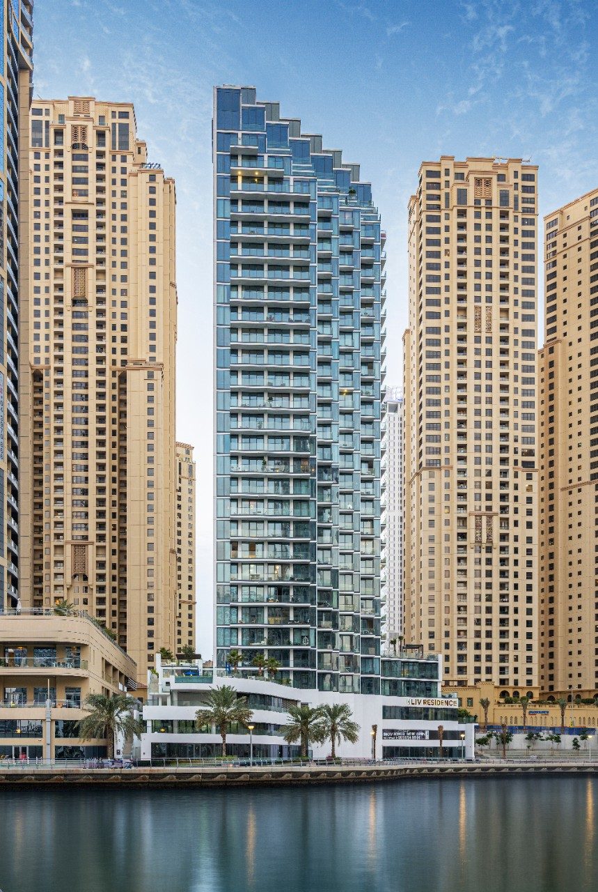 Rising above the Dubai Marina, LIV Residences is a striking condominium development that reflects the elegance of its waterfront setting.