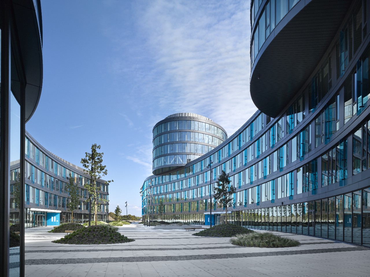 El edificio está certificado según el estándar internacional LEED Gold gracias al uso de una variedad de sistemas de gestión de energía, incluido el uso de vidrio protector solar Guardian SunGuard SNX 60/28. Con un aspecto transparente y neutro, y una baja reflexión, este vidrio aporta una apariencia sofisticada al edificio, a la vez que deja pasar mucha luz natural pero una baja cantidad de calor solar. El resultado es un entorno de trabajo más cómodo para los ocupantes.