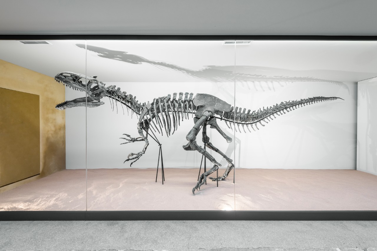 Kléber Roussillon, proprietário dos Jardins de Marqueyssac, adquiriu o dinossauro em um leilão pela modesta soma de 1,128 milhão de euros. Para mostrar um bem tão valioso com a melhor iluminação possível, foi escolhido o vidro antirreflexo Guardian ClarityTM para reduzir o brilho indesejado e os reflexos a um mínimo. Os visitantes desfrutam de vistas perfeitas e panorâmicas através do vidro, permitindo uma visão clara dos impressionantes dentes e garras de Kan.