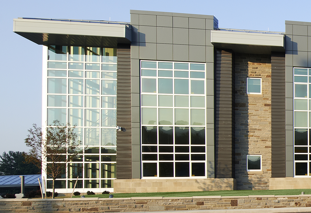 a Highland se comprometeu a criar uma escola de ensino fundamental diferente. “Queríamos que o edifício fosse uma ferramenta integrada ao currículo deles e fomentasse diferentes tipos de aprendizagem; aprendizagem em sala de aula, interação espontânea, colaboração em pequenos grupos, instrução em grandes grupos, aprendizagem ao ar livre etc.”, explica Degnon. “Para nós, foi importante garantir que a escola ajudasse no processo de cura de uma comunidade que foi devastada por um desastre natural, e servisse como símbolo da determinação e perseverança da comunidade de Owego”. Além disso, a Highland Associates precisava projetar um edifício com um envelope de alto desempenho para atender aos requisitos da certificação LEED®, incluindo o crédito de desempenho acústico aprimorado. Embora estivesse analisando opções de envidraçamento de alto desempenho e baixa emissividade, a equipe de construção sabia que incorporar vidro laminado reduziria muito a quantidade de ruído externo.