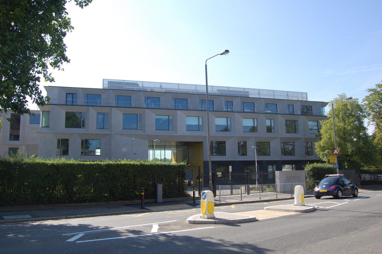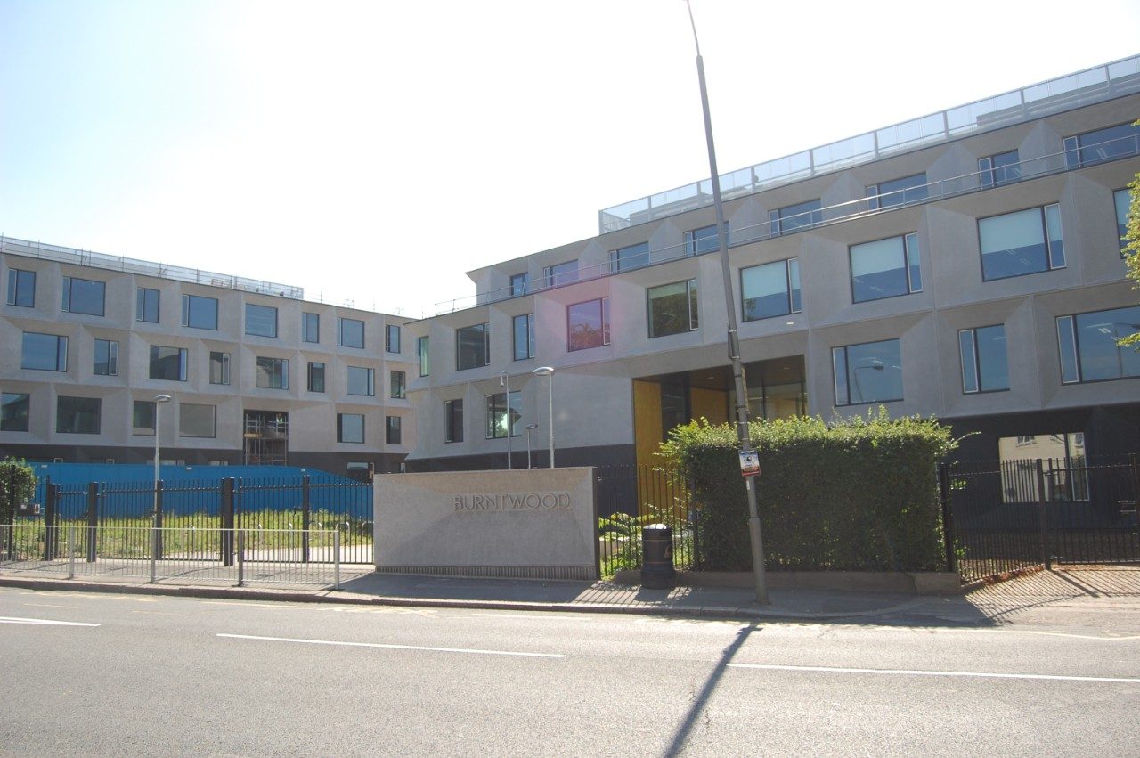 The Burntwood School in Wandsworth, South London, was a campus built in 1950. Of the original complex, only the building with a swimming pool and gymnasium and the Assembly Hall have survived. The demolished buildings were replaced by six new pavilions designed by the Allford Hall Monaghan Morris architects. These pavilions are subdivided into four buildings for education, one for sports and performing arts, and one for the canteen.