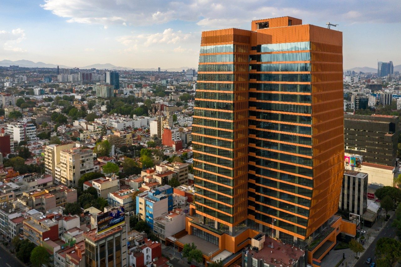 The Carracci Corporate tower in Mexico City, Mexico by Colonnier Architects features SunGuard® SNX 51/23. The tower gains presence with an innovative character, the facade materials create an extraordinary volumetry combination of curtain wall and ventilated terracotta facade. Thanks to excellence in design, quality and innovation in installed equipment and adequate construction systems, the building seeks LEED Silver certification.