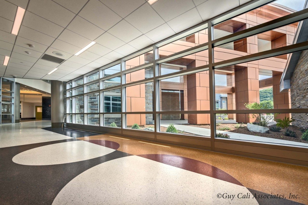 Highland committed to creating an atypical elementary school. “We wanted the building to be an integrated tool for their curriculum, and foster different types of learning; classroom learning, spontaneous interaction, small group collaboration, large group instruction, outdoor learning, etc.,” explains Degnon. “It was important for us to ensure the school embody the healing of a community (devastated by a natural disaster), and serve as a symbol of the determination and perseverance of the Owego community.” Additionally, Highland Associates needed to design a building with a high-performing envelope in order to meet LEED® requirements, including the enhanced acoustical performance credit. While it examined high performance, low-E glazing options, the building team knew that incorporating laminated glass would greatly reduce the amount of outside noise.