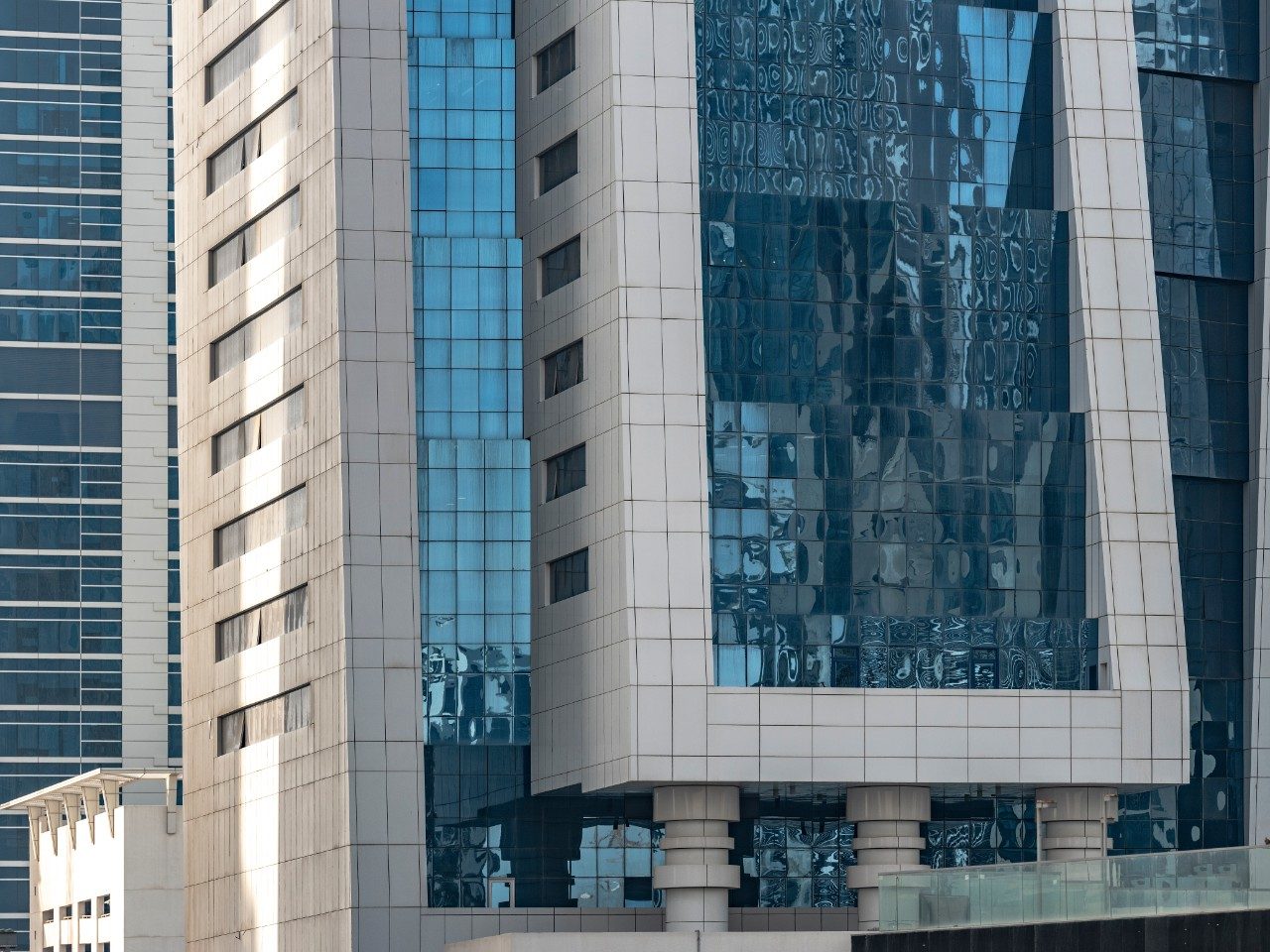 The Exchange Tower is a commercial building located in Business Bay, Dubai. It consists of 28 floors, three basement and podium levels and a ground floor. The Exchange Tower offers features such as 24/7 security, covered parking spaces, high-speed elevators, the latest communication technology, green open spaces with walkways, lagoon-side cafe and restaurants, as well as state-of-the-art safety and electrical systems. Additional amenities located in the building include a beauty salon, bank, clinic and pharmacy.