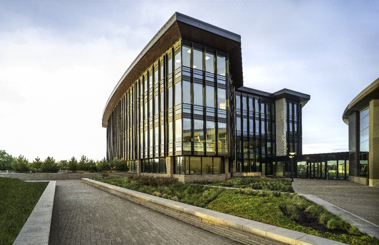 El campus corporativo de ATCO Calgary consta de tres edificios: un edificio de uso "común" con dos edificios de oficinas, todos ellos con vidrio revestido Guardian SunGuard® SuperNeutral® 54 transparente. Gibbs Gage Architects diseñó la nueva ubicación para reunir a numerosos edificios de personal en toda Calgary y fomentar una única cultura, con el edificio "The Commons" que sirve como espacio de reunión, no solo para los empleados de ATCO sino también para el público.