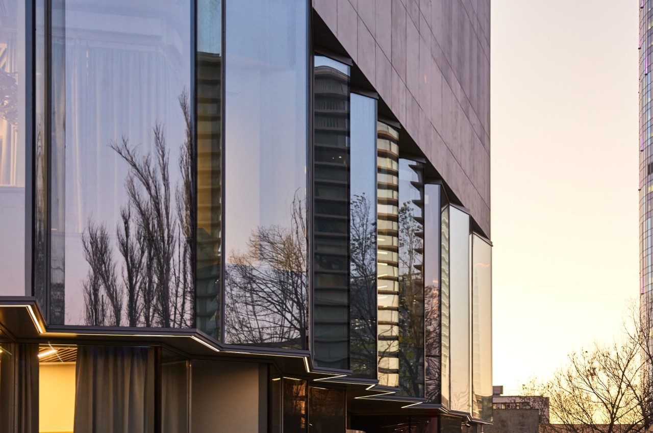 Se eligió el vidrio con recubierto antireflejo de dos caras Guardian Clarity™ para la planta baja del hotel. El vidrio ofrece una excepcional neutralidad y contraste, elimina el resplandor no deseado y proporciona a los huéspedes vistas claras, prácticamente sin distorsión y sin obstrucciones a través del vidrio.