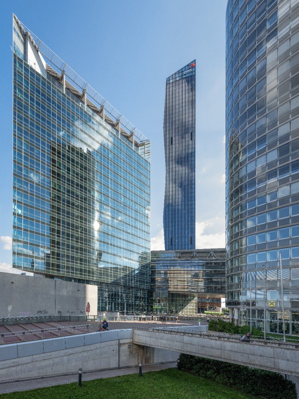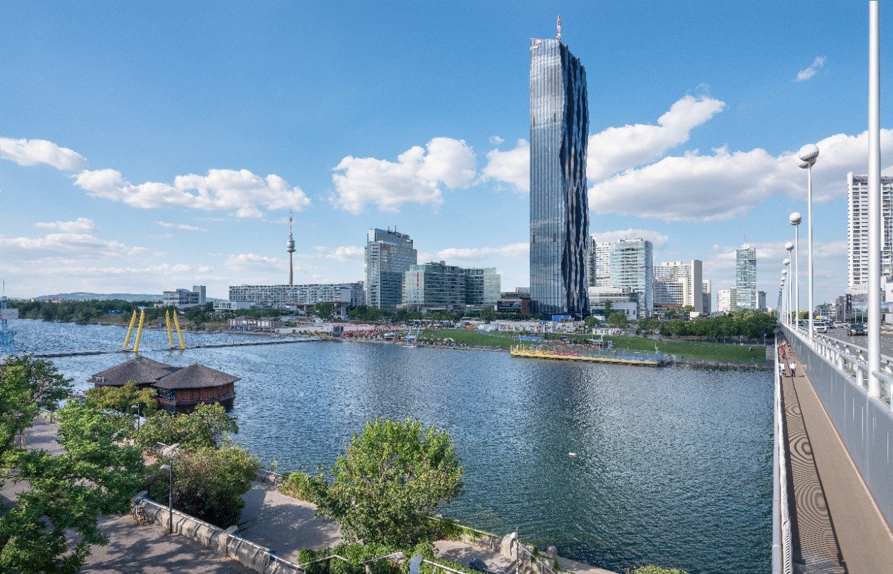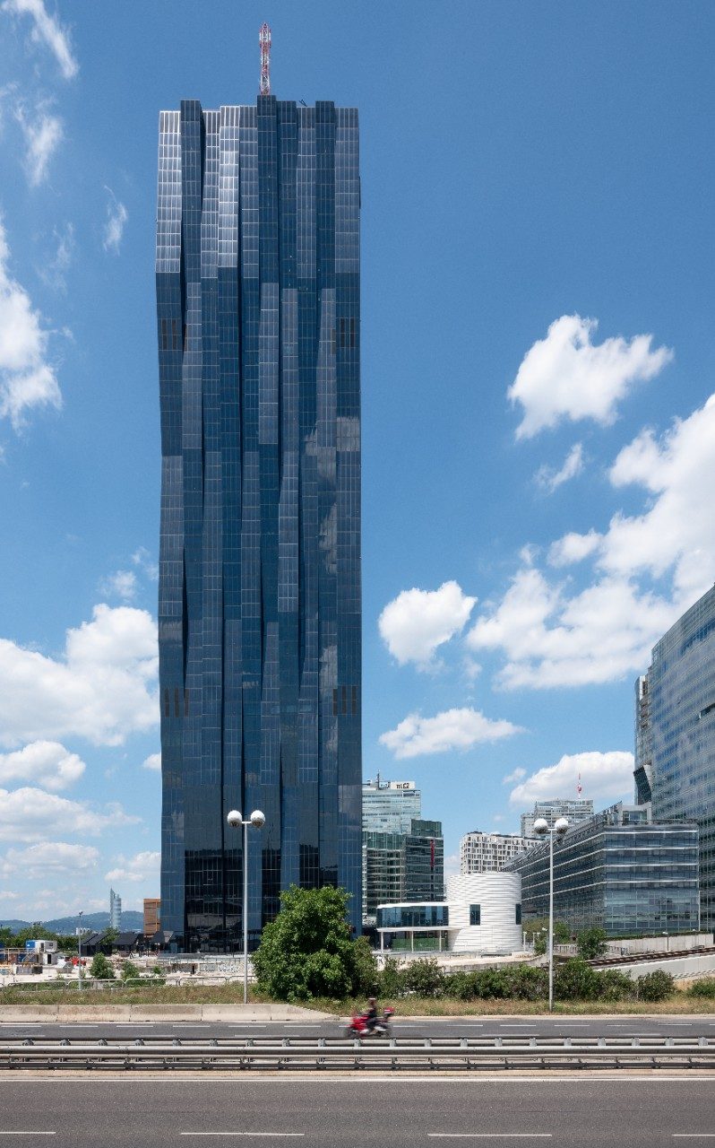 Diseñado por Dominique Perrault, la torre 1 del proyecto de Donau City (DC) Towers es un edificio prominente en el horizonte de Viena y es el rascacielos más alto de Austria. El proyecto DC constará de tres torres en total, dos de las cuales aún están en construcción.
