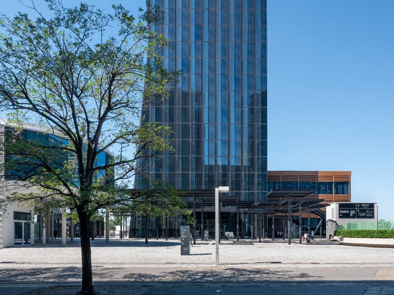 La torre 1 de 250 metros de altura es un nuevo edificio urbano de usos múltiples que incluye oficinas, un hotel, apartamentos, un gimnasio, un bar y restaurantes. El edificio combina una estética asombrosa con un diseño y funcionalidad avanzados y energéticamente eficientes. El rascacielos es una de las primeras torres de oficinas de Austria en ser construida y está diseñada de acuerdo con los requisitos energéticos y de sostenibilidad de los "edificios ecológicos" emitidos por la Comisión Europea.