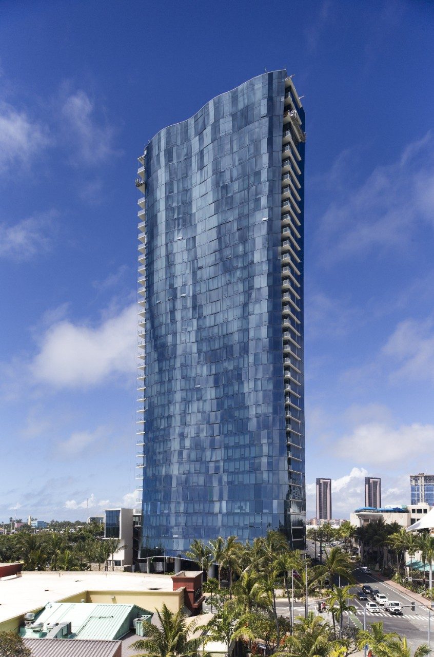 Waiea Tower ofrece las residencias más grandes y sofisticadas de Hawái, con vistas espectaculares del Océano Pacífico, Waikki y Diamond Head. Waiea Tower es espectacular en sí misma, con el vidrio SunGuard® SNR 43 en CrystalGray® reluciente bajo el sol de la isla.